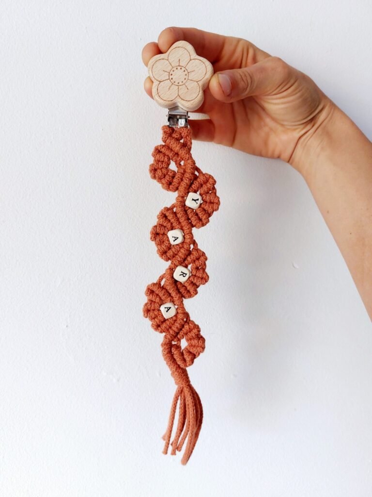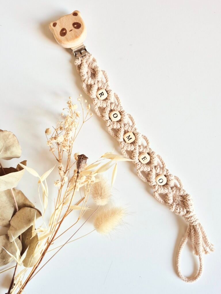 Sache que tout est possible ici ! Qu’il s’agisse d’une suspension déco pour la chambre ou d’une attache tétine à utiliser au quotidien, nous pouvons la personnaliser ensemble pour en faire un objet unique !